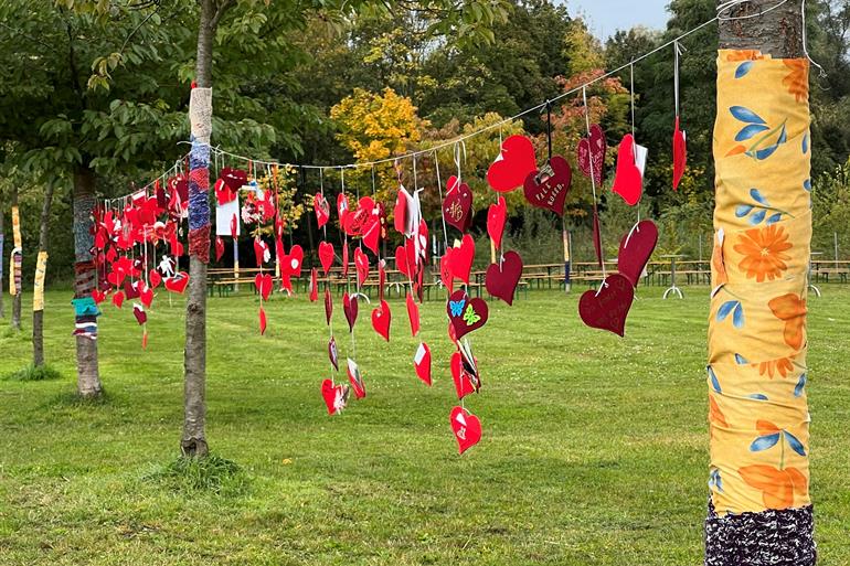 In diesem Jahr schmückten Angehörige von Organspendern aus ganz Deutschland die Bäume mit individuell gestalteten Erinnerungsherzen, zum Erinnern und Gedenken an die geliebte Person, die sie verloren, und durch deren Organspende andere Menschen eine neue Lebensperspektive erhalten haben.